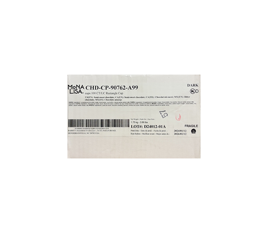 The chocolate rectangle cups present a sophisticated addition to bakery offerings, providing a perfect vessel for serving delectable treats with a touch of elegance. Crafted from high-quality chocolate, these rectangular-shaped cups are ideal for presenting desserts such as mousses, puddings, or ganaches. Their sleek design and rich chocolate flavor elevate the presentation of desserts, making them an irresistible choice for customers seeking indulgent delights.