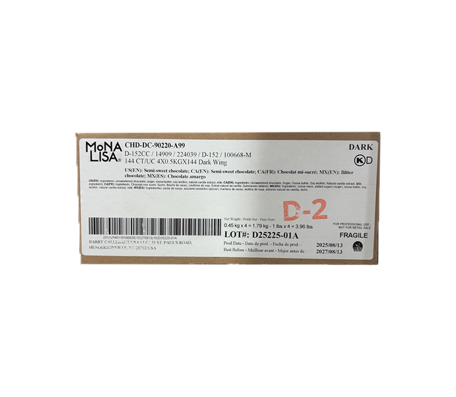 The dark chocolate wings provide a decadent and sophisticated addition to bakery offerings, featuring rich cocoa flavor and a smooth, velvety texture. These wings are meticulously crafted with premium dark chocolate, ensuring a delightful indulgence for chocolate enthusiasts. With their elegant shape and intense chocolate taste, these wings elevate desserts, adding a touch of luxury to cakes, pastries, and other confections.